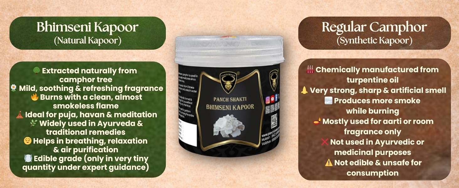 Not everyBhimseni Camphor 100 gm available in the market is pure and consumable so choose your trusted brand PANCH SHAKTI .