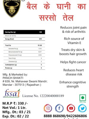 - Trusted Quality: PANCH SHAKTI ensures the highest standards of quality and purity, making this oil a must-have for health-conscious individuals seeking a delicious, nutritious choice.