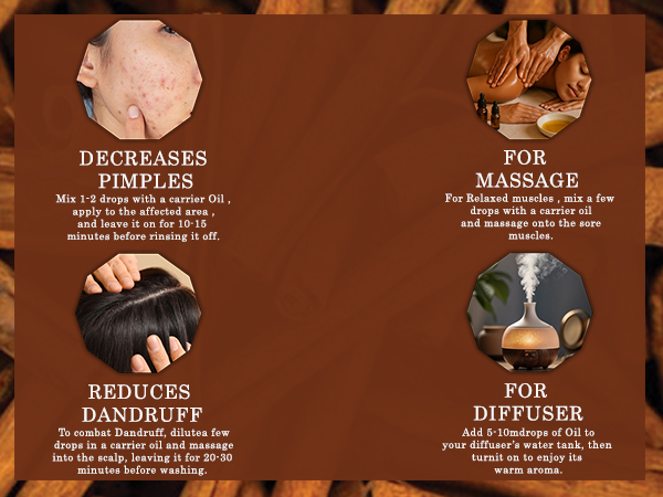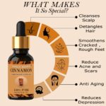 PANCH SHAKTI® Cinnamon Bark Essential Oil is a high-quality, steam-distilled oil derived from pure cinnamon bark, ensuring its rich and potent benefits. This essential oil is packed with antioxidants and antibacterial properties, making it a powerful addition to skincare and haircare routines. It helps reduce the appearance of scars and blemishes, soothes irritated skin, and promotes a clear, youthful complexion. For hair, it nourishes the scalp, helps reduce dandruff, and encourages healthy hair growth. Its warming and comforting scent makes it an excellent choice for aromatherapy, promoting relaxation and a sense of well-being. When used for massages, it helps relieve muscle tension and provides a deeply calming experience. Free from sulphates, parabens, and harmful additives, this cruelty-free essential oil ensures a pure and natural wellness experience.
